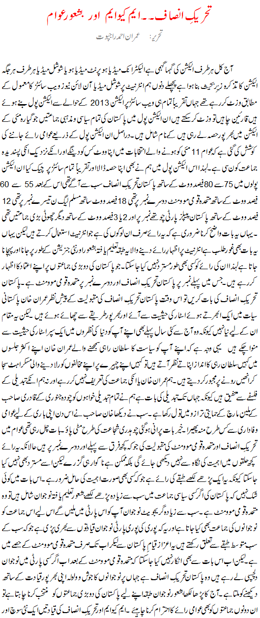 کراچی آپریشن اور ایم کیو ایم ۔ عمران احمد