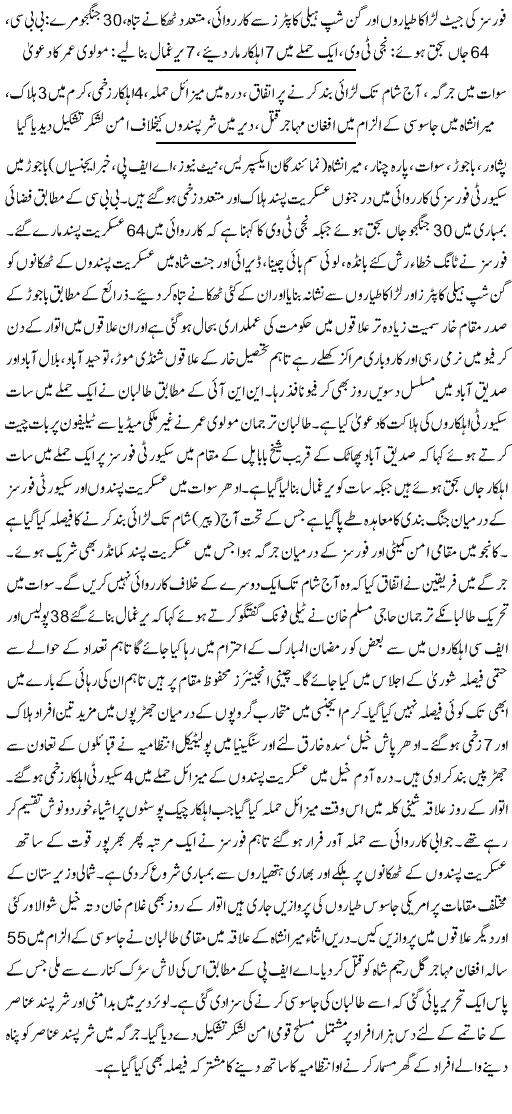 The bodies of three local Bajaur men who had been shot in the neck were also found yesterday. Notes were attached declaring the men to have been spies.