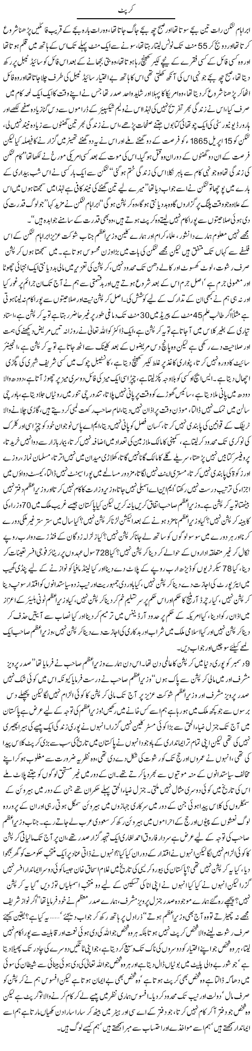Javed Ch on corruption -an Urdu Article