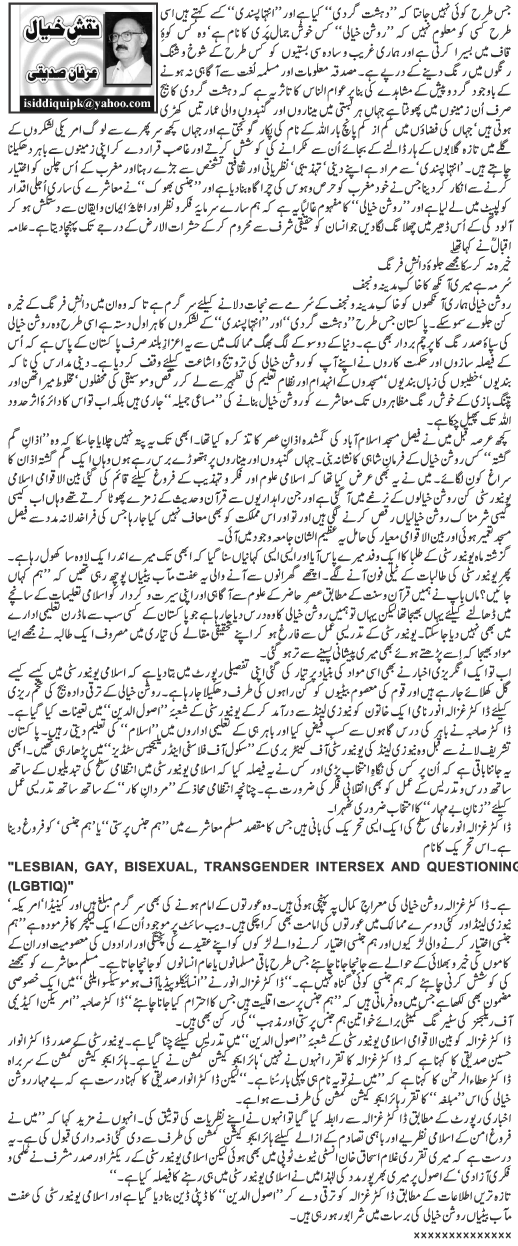 AUCKLAND: Responding to The News repeated calls and emails for her version over the past four days from here in New Zealand, Ghazala Anwar confirmed her support to LGBTI community terming them as 'sexual minorities' and asserted that she considers their act permissible in Islam.