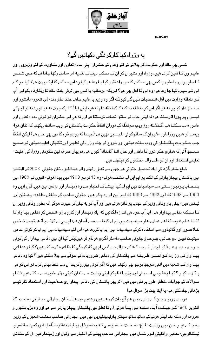 AOA Dear Faizi sb very important topic you have picked for you article and i really appreciate it. Can you take some more pain give brief introduction of other ministers and their education and family background as well.