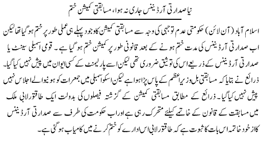 On September 4, 2009, CCP Chairman Khalid Mirza was unceremoniously sacked by Prime Minister Gilani (Additional Secretary Planning Javed Akhtar was appointed as the new chairman after being promoted to Grade 22).
